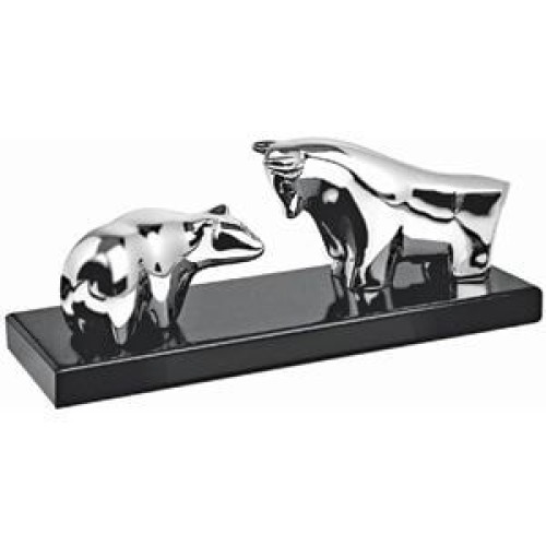Стела "Быки и Медведи", серебристый, 28х10х10 см, металл, дерево, шильд