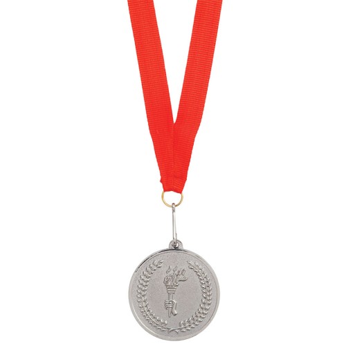 Медаль наградная на ленте "Серебро",,размер: длина ленты - 48 см., D=5см.материал: текстиль, металл