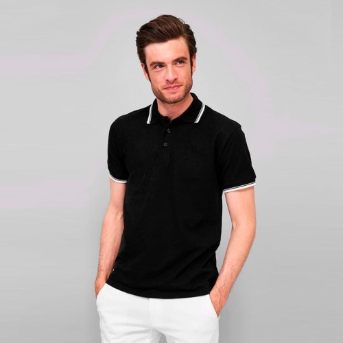 Поло "Practice" черный с белым_XL, 100% х/б, 270г/м2