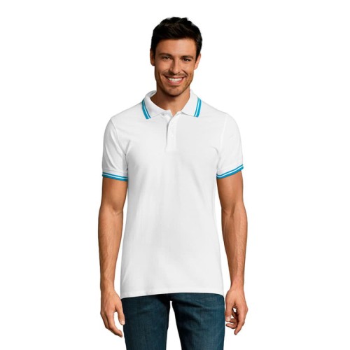 Поло "Pasadena Men" белый, голубой__S, 100% х/б, 200г/м2