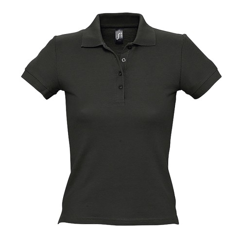 Женское поло. Облегающий силуэт.,Прямой низ с боковыми разрезами. Короткий рукав.Ребристые воротник и манжеты.Ворот укреплен тесьмой.На планке воротника 4 пуговицы в тон изделия.