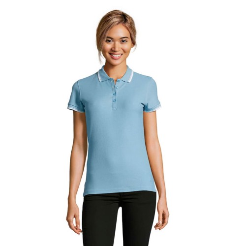 Поло "Practice Women" голубой с белым_L, 100% х/б, 270г/м2