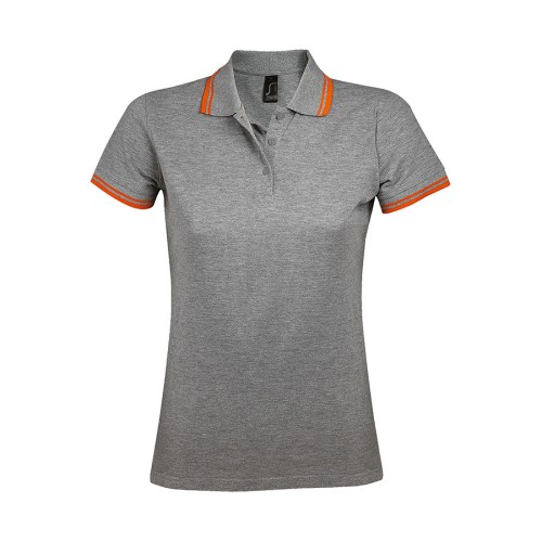 Поло "Pasadena Women", серый-меланж, оранжевый_L, 100% х/б, 200г/м2