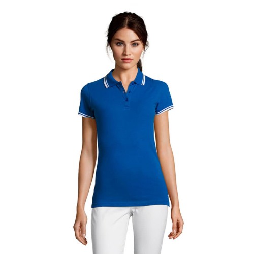 Поло "Pasadena Women", ярко-синий, белый_S, 100% х/б, 200г/м2