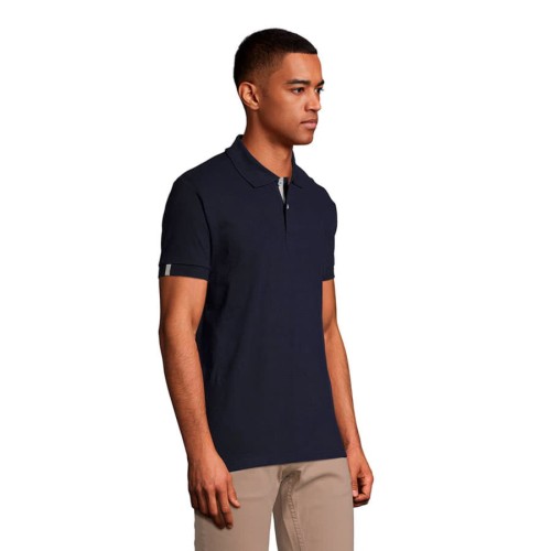 Мужская рубашка поло с коротким рукавом из 100% хлопокаИз трикотажного ПИКЕ плотностью 200 г/м2100% хлопок RingspunВоротник и манжеты из резинки-рибаны 1x1Усиливающая декоративная контрастная тесьма серого цвета в плечевом шве, на планке и рукавахПланка с 2-мя перламутровыми пуговицамиЗапасная пуговица на ярлыке в бококом швеБоковые разрезы усилены контрастной тесьмойПриталенный силуэтЦвет, близкий к Pantone 296 C,