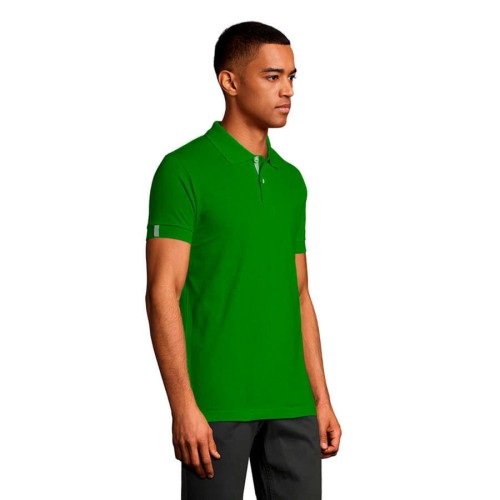 Мужская рубашка поло с коротким рукавом из трикотажного пике плотностью 200 г/м2.100% хлопок Ringspun.Воротник и манжеты из резинки-рибаны 1x1.Усиливающая декоративная контрастная тесьма серого цвета в плечевом шве, на планке и рукавах.Планка с 2-мя перламутровыми пуговицами.Запасная пуговица на ярлыке в бококом шве.,Боковые разрезы усилены контрастной тесьмой.Приталенный силуэт.Цвет, близкий к Pantone 363 C