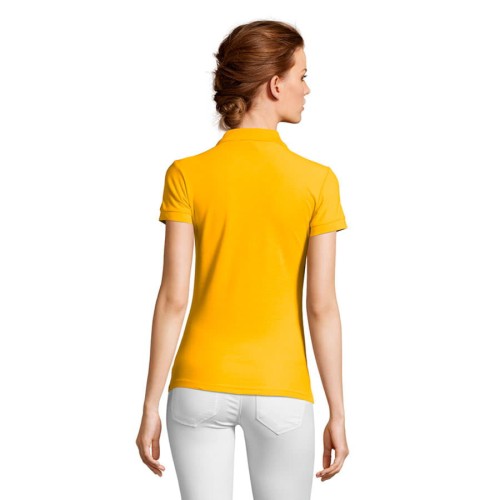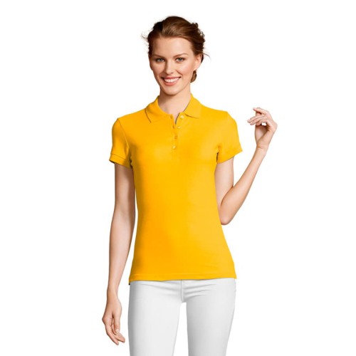 Женская рубашка поло.Прилегающий силуэт.Прямой низ с боковыми разрезами.Воротник и манжеты из рибаны в тон изделия.Ворот укреплен тесьмой.На планке воротника 4 пуговицы в тон изделия.Цвет близкий у PANTONE,1225C