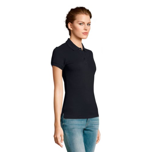 Женская рубашка поло.Прилегающий силуэт.Прямой низ с боковыми разрезами.Воротник и манжеты из рибаны в тон изделия.Ворот укреплен тесьмой.На планке воротника 4 пуговицы в тон изделия.Цвет близкий у PANTONE,296C