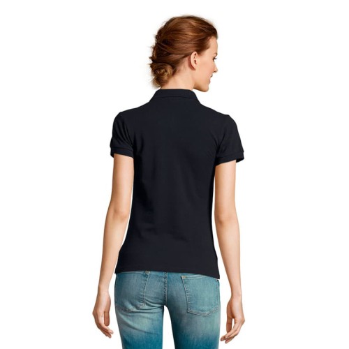 Женская рубашка поло.Прилегающий силуэт.Прямой низ с боковыми разрезами.Воротник и манжеты из рибаны в тон изделия.Ворот укреплен тесьмой.На планке воротника 4 пуговицы в тон изделия.Цвет близкий у PANTONE,296C