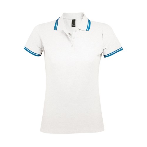 Поло "Pasadena Women" белый, голубой__XL, 100% х/б, 200г/м2