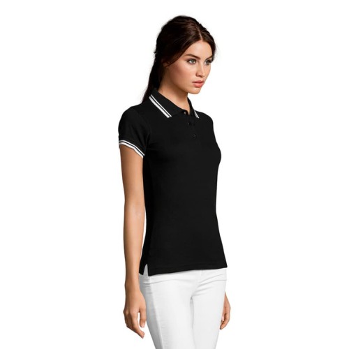 Поло "Pasadena Women" черный, белый__L, 100% х/б, 200г/м2