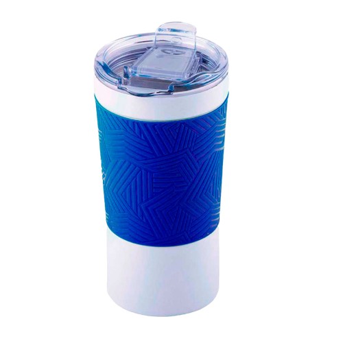 Термокружка вакуумная 'Funny" белая, синяя, силикон