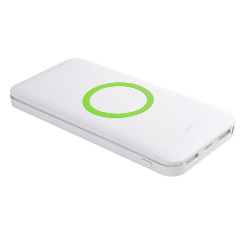 Универсальный аккумулятор с функцией беспроводной зарядки SATURN,белый со светло-зеленым,15х