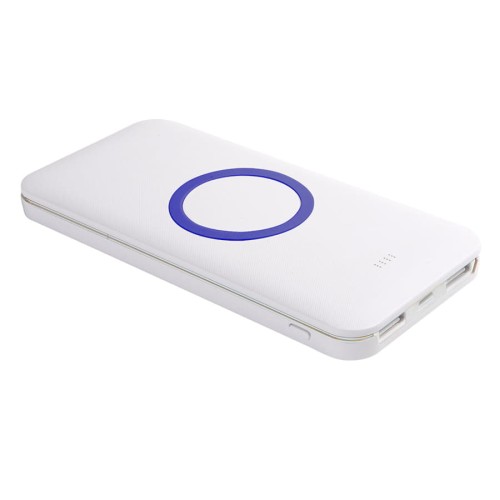 Универсальный аккумулятор с функцией беспроводной зарядки SATURN,белый с синим,15х7,3х1,2см