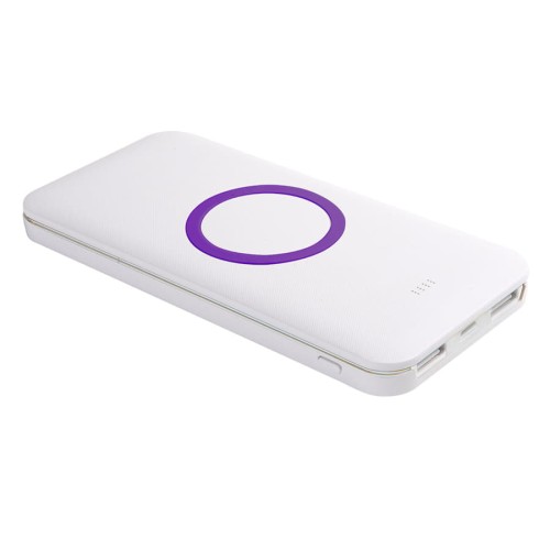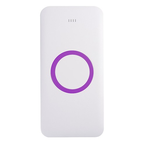 Универсальный аккумулятор с функцией беспроводной зарядки SATURN,белый с фиолетовым,15х7,3х1