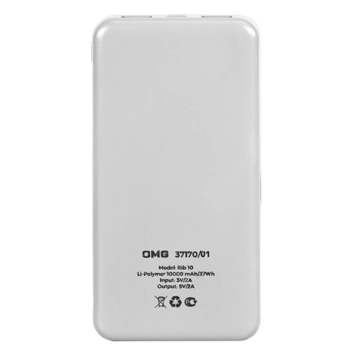 Универсальный аккумулятор Rib 10 (10000 мАч), белый, 13,5х6.8х1,5 см