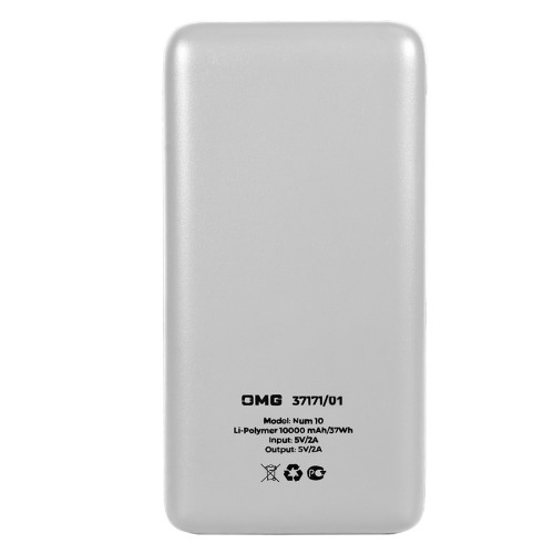 Универсальный аккумулятор Num 10 (10000 мАч), белый, 13,9х6.9х1,4 см
