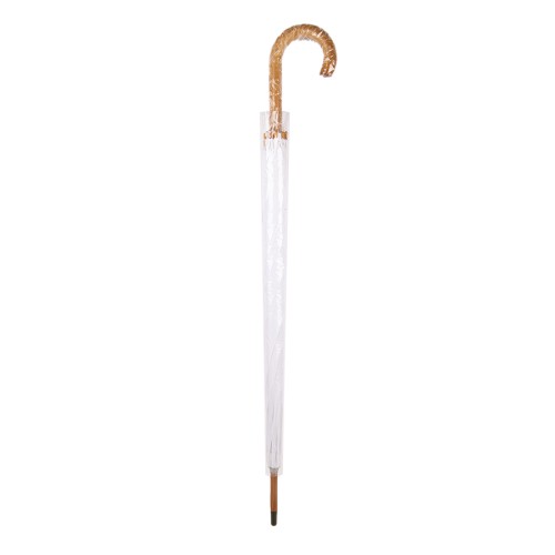 Зонт-трость, полуавтомат. Диаметр купола: 103 см., длина стержня 90 см. Состав купола: 100% полиэстер 190T Состав стержня: дерево. Состав спиц: металл. Ручка: дерево. Цвет купола: белый.
