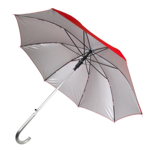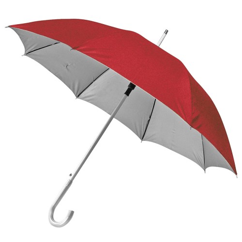 Зонт-трость с пластиковой ручкой "под алюминий" "Silver", полуавтомат, красный с серебром, D=103 cм
