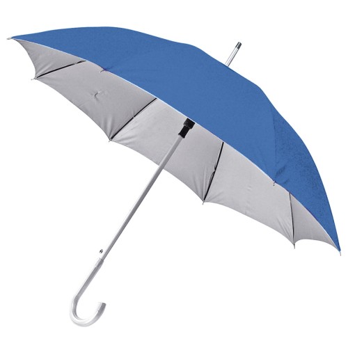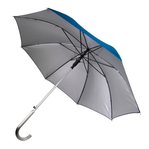 Зонт-трость с пластиковой ручкой "под алюминий" "Silver", полуавтомат, синий с серебром, D=103 см,