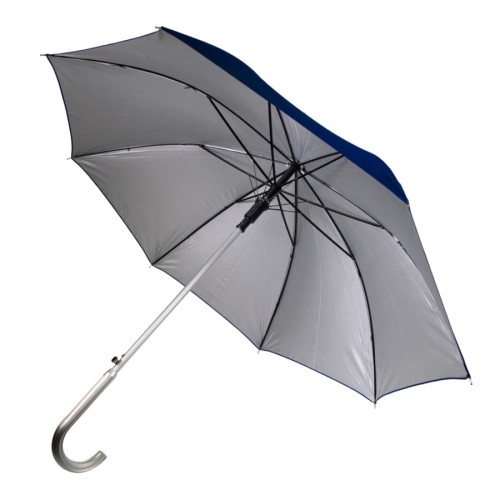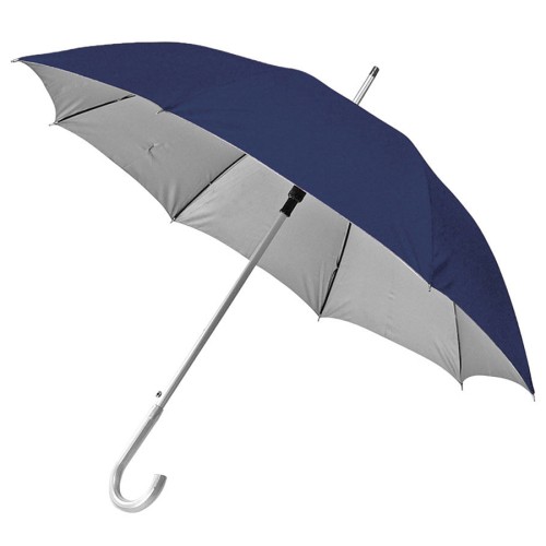 Зонт-трость с пластиковой ручкой "под алюминий" "Silver", полуавтомат, темно-синий с серебром, D=103